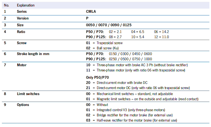 CMLA P50, P70, P90, P125 Technical drawing