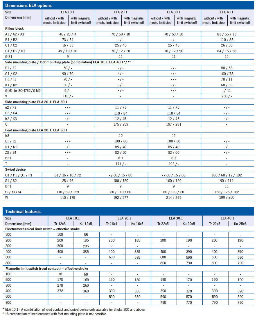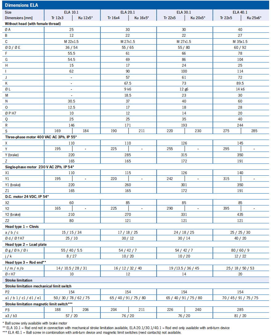 ELA 10.1, 20.1, 30.1, 40.1 Technical drawings
