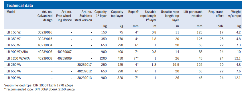 繩索絞車 SW-K-LB,最初開發為車輛絞車,現在用來提升和拉許多困難的負載。它有兩種設計,"鍍鋅"和"不銹鋼"。