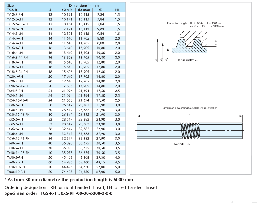 線程形式: Metric ISO trapezoidal thread according to DIN 103-7e 3000